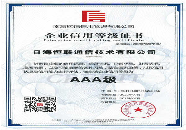 企業(yè)信用等級(jí)AAA級(jí)信用企業(yè)