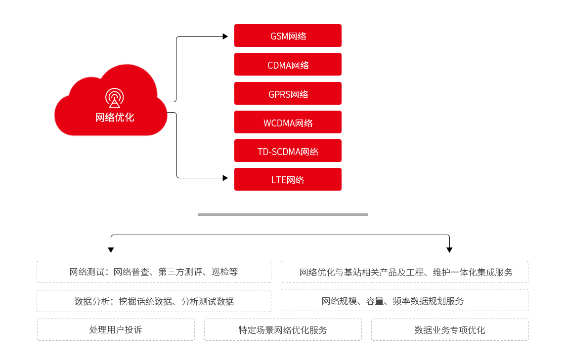 公司具有專業(yè)的網(wǎng)絡(luò)優(yōu)化分析團隊,具備多廠家、多運營商的綜合性網(wǎng)絡(luò)優(yōu)化能力,針對GSM、CDMA、TD-SCOMA、WCDMA、LTE等多種制式的無線網(wǎng)絡(luò),提供整體的優(yōu)化解決方案,包括建網(wǎng)初期相后期擴容工程的工程網(wǎng)絡(luò)優(yōu)化服務(wù)、運維期間的日常網(wǎng)絡(luò)優(yōu)化服務(wù)、階段性分析解決網(wǎng)絡(luò)瓶頸的專項網(wǎng)絡(luò)優(yōu)化服務(wù),通過測試數(shù)據(jù)分析、話統(tǒng)數(shù)據(jù)分析,結(jié)合天饋線系統(tǒng)優(yōu)化、無線參數(shù)優(yōu)化話務(wù)均衡等方式,對網(wǎng)絡(luò)性能指標進行優(yōu)化提升,最終達到提高網(wǎng)絡(luò)質(zhì)量以滿足終端用戶需求及提升網(wǎng)絡(luò)設(shè)備利用率的效果。